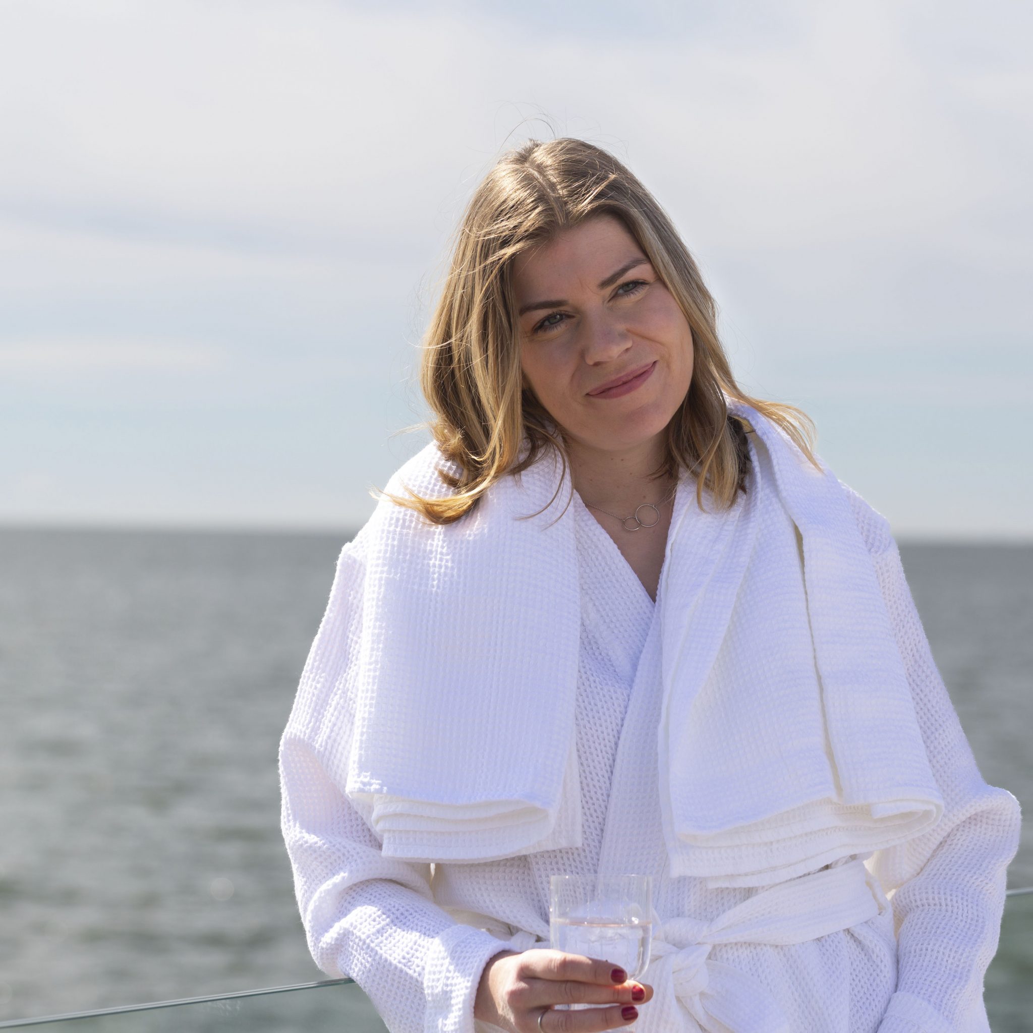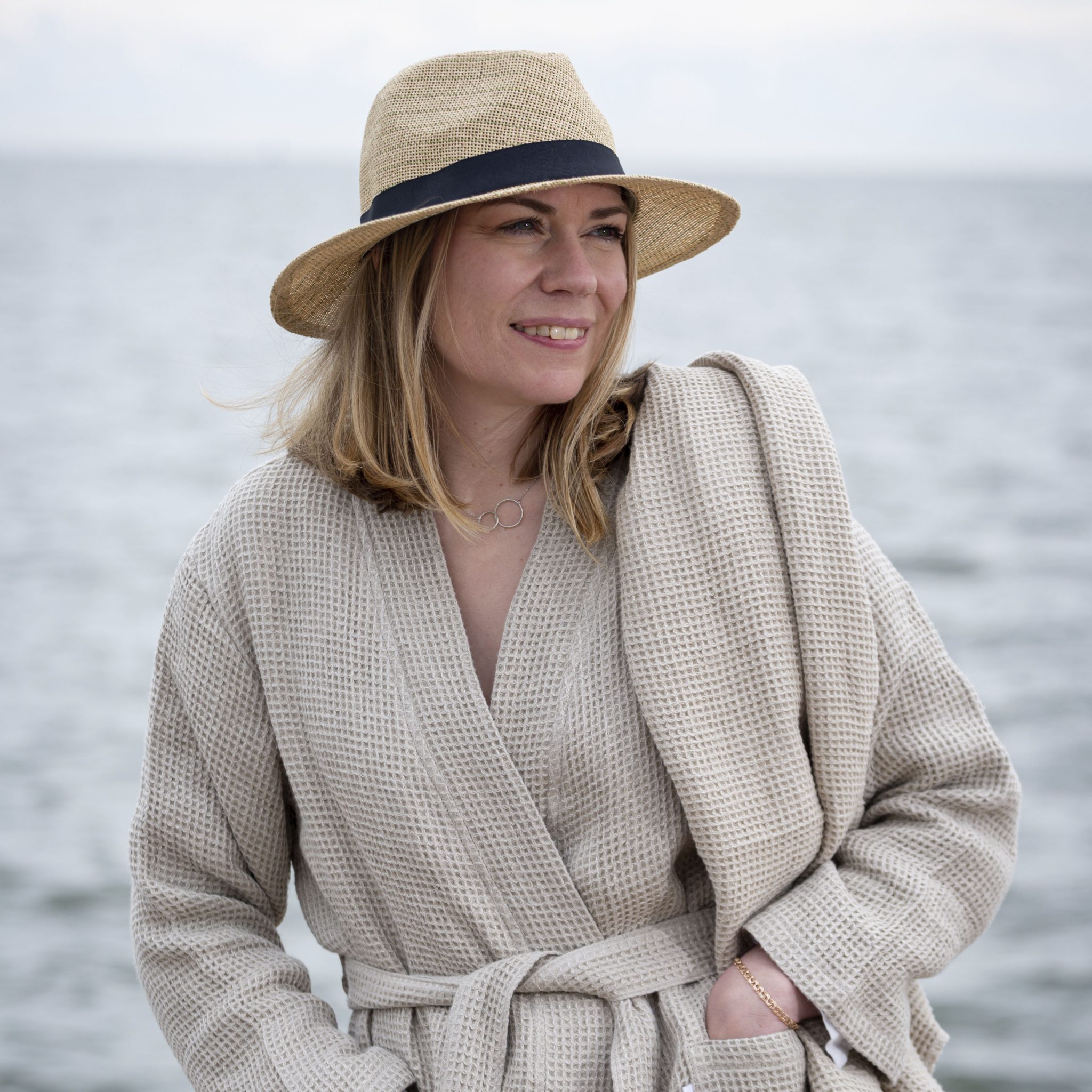 Tyylikkäässä kylpytakissa voisi viihtyä vaikka aamusta iltaan. Pyyhe samasta sarjasta täydentää kesälookiasi 🙂 Pellavaisiin torkkupeittoihin on ihana kietoutua ja ne lämmittävät juuri sopivasti päiväunilla tai kesäillan istujaisissa.